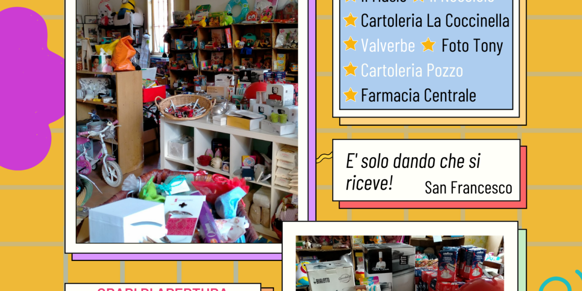 A Riva presso Chieri (To) i volontari hanno allestito un grande Banco di Beneficenza con gli oggetti donati da privati cittadini, da diversi esercizi commerciali locali e da due grandi aziende piemontesi (Valverbe e Lavazza).